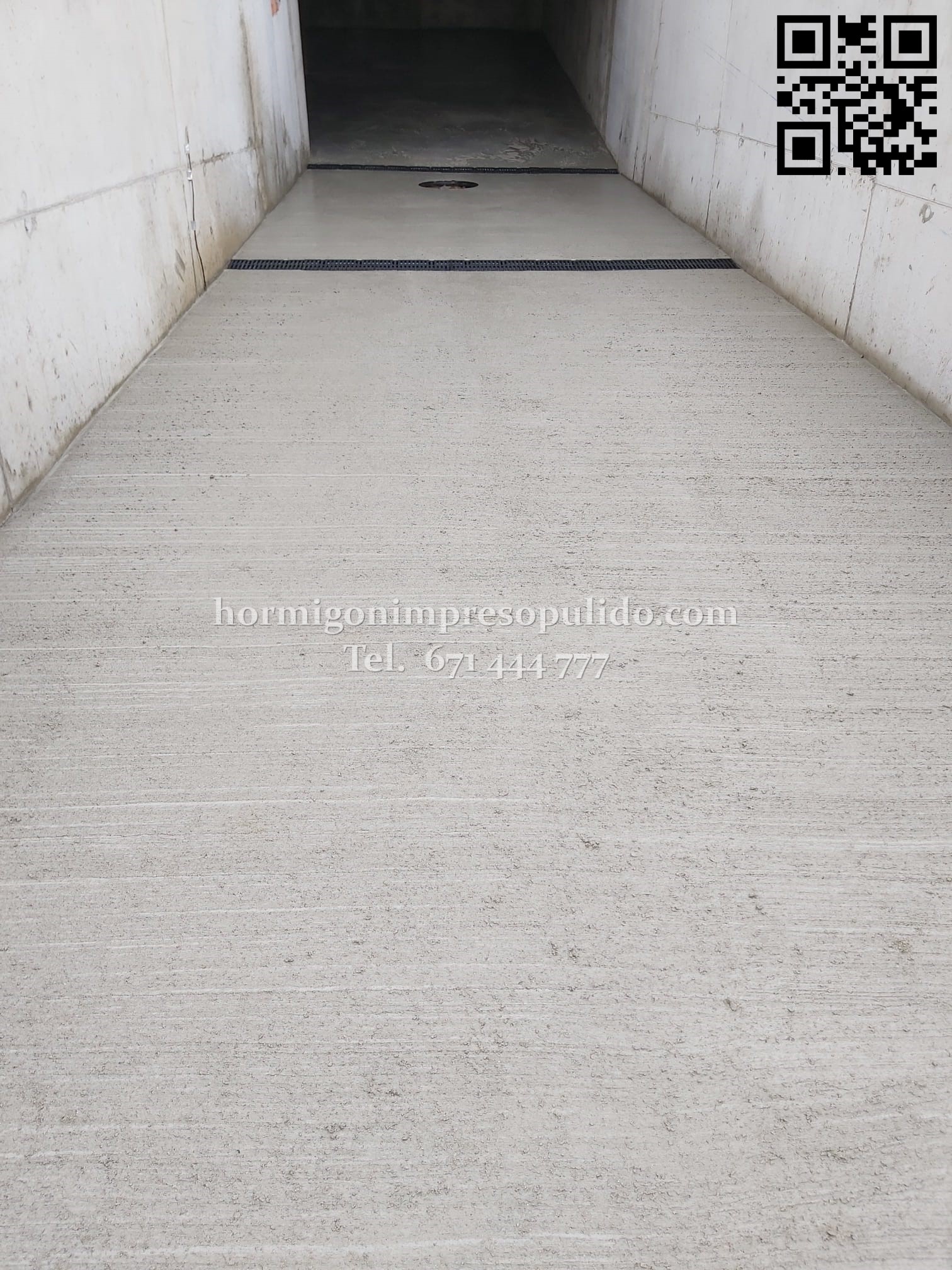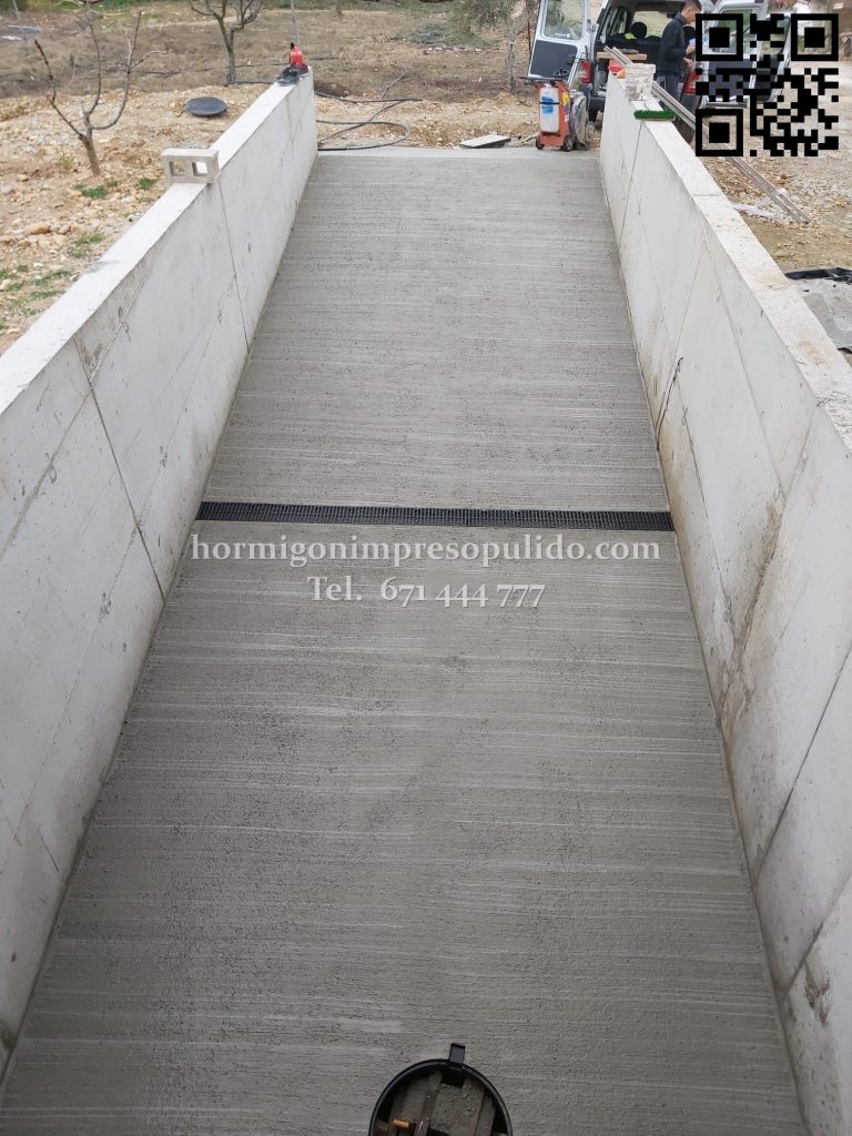 Este tipo de hormigón es tratado con una llana mecánica manual, se incorpora un recubrimiento endurecedor para su posterior rayado superficial, dándole un aspecto estriado, dependiendo de las necesidades del cliente.
